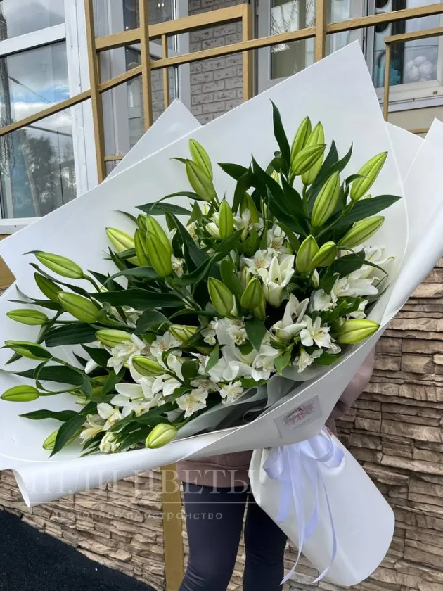 Букет гигант из самых стойких цветов не оставит равнодушной ни одну получательницу и подойдет на любой повод! Букет собран с светлых белых тонах, что подчеркнет чистоту ваших намерений и большую любовь! Собираем букеты с большой любовью и теплотой!