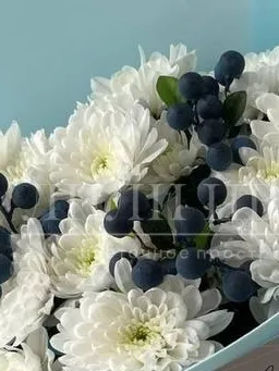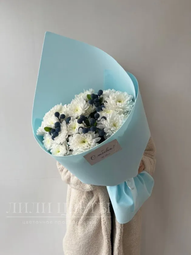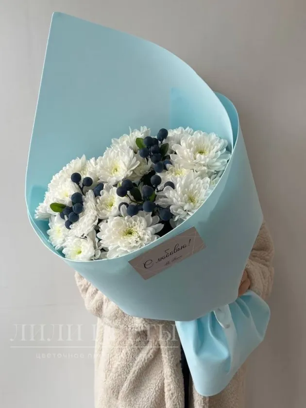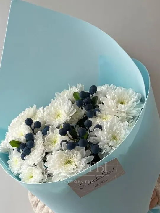 Монобукет из кустовой хризантемы с искуственными ягодами