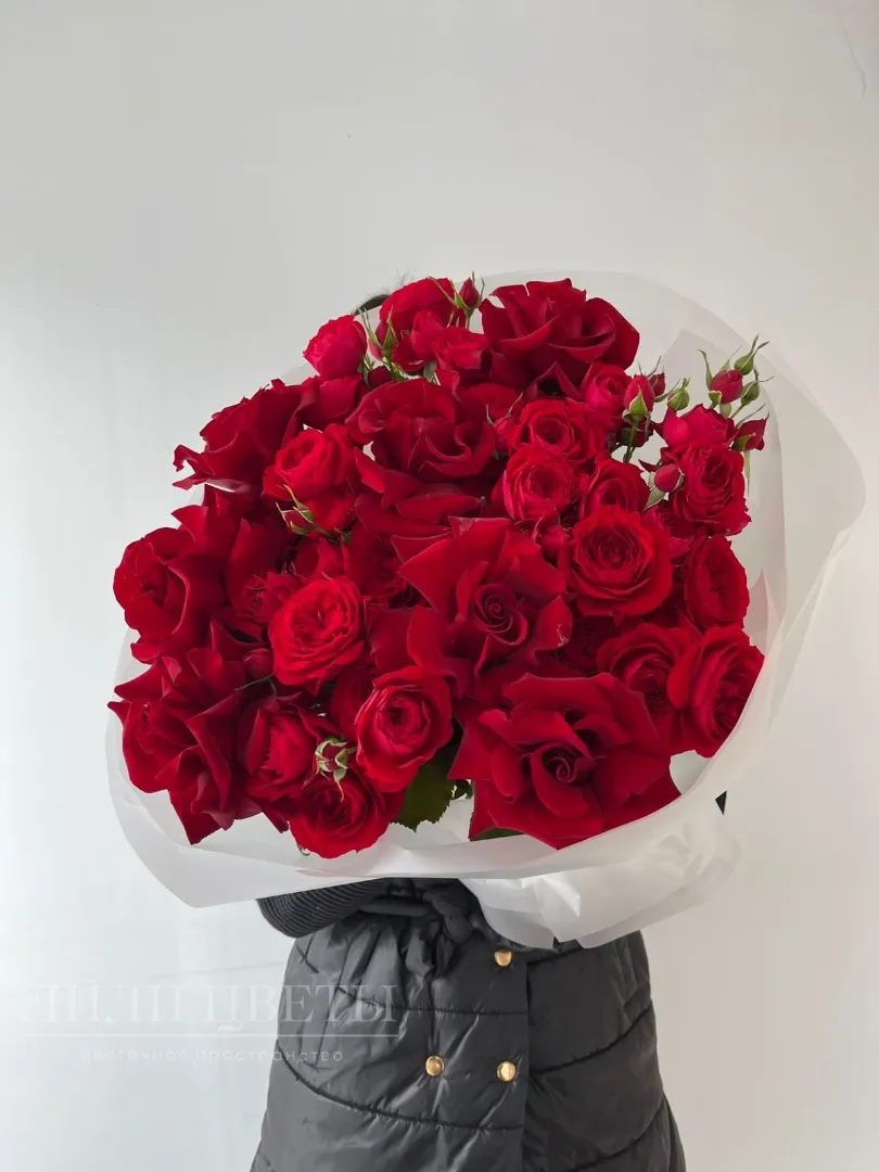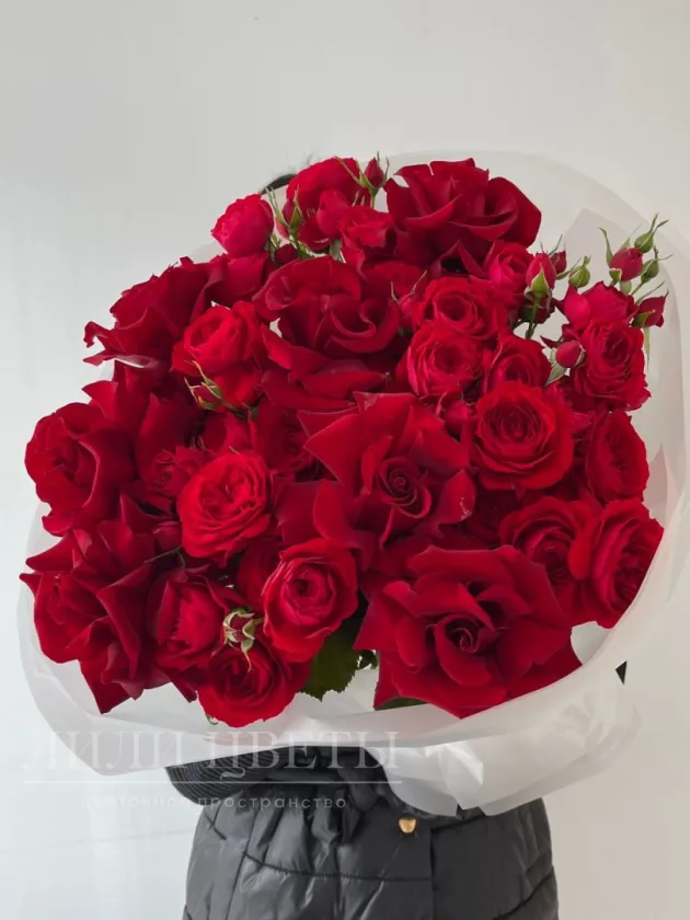 Сборный букет из кустовых и ажурных роз