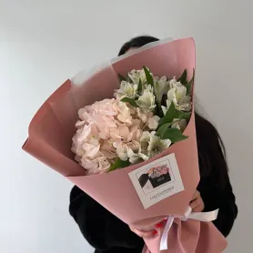 Букет из гортензии с альстромерией в нежной упаковке