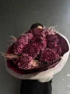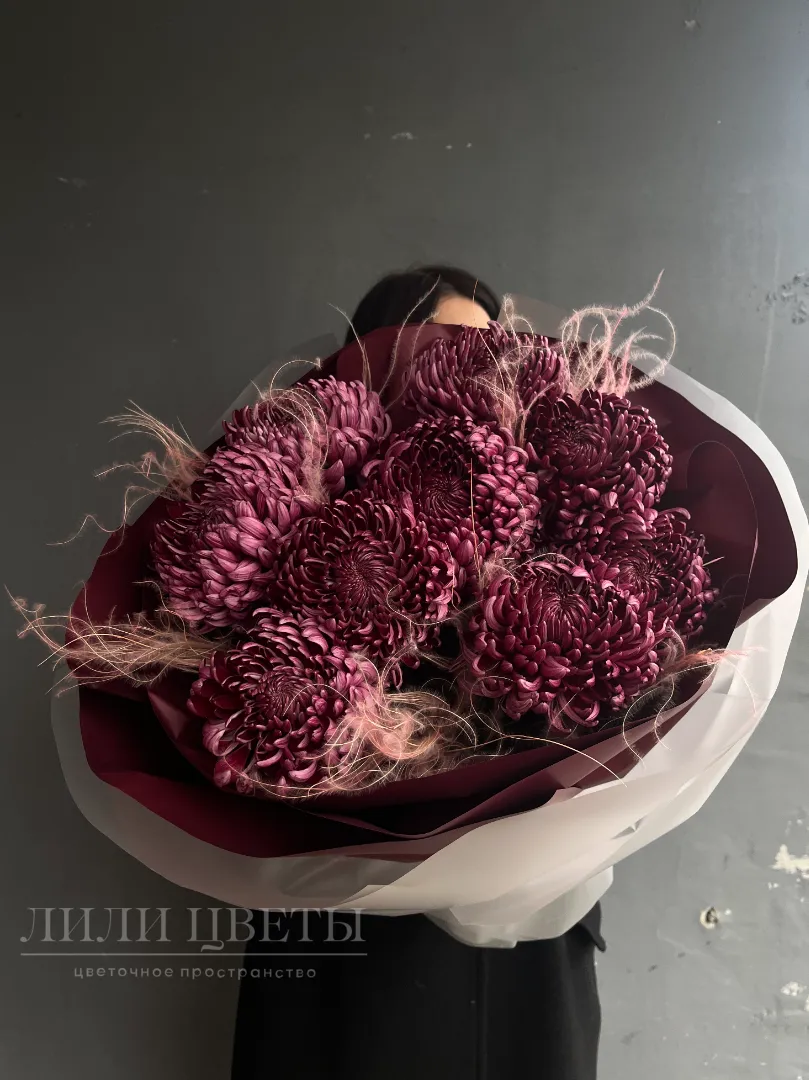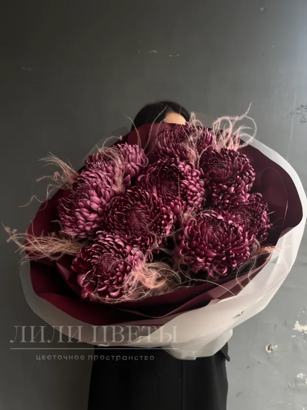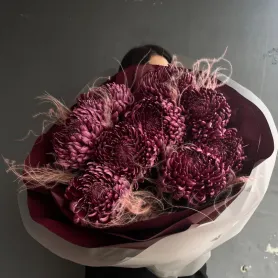 Изящный букет состоит из больших одноголовых хризантем, которые поражают своей утонченностью и элегантностью. Каждая цветочная головка символизирует гармонию и искренность, их аккуратная крупная форма придает монобукету строгость и изысканность. Такой букет идеально подойдет для тех, кто ценит минимализм и естественную красоту, он станет прекрасным подарком на любой повод или стильным украшением интерьера.