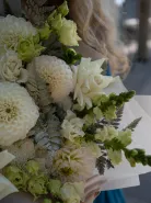 Настоящее воплощение нежности, чистоты и утончённой красоты. В составе букета гармонично сочетаются крупные и пышные георгины, изящные розы и воздушная эустома, создающие ощущение лёгкости и изящества. Каждый цветок выбран с особой тщательностью, чтобы подчеркнуть гармонию и баланс композиции, а мягкие белые тона придают ей свежесть и чистоту. Такой букет отлично подойдёт для поздравлений с важными событиями или станет прекрасным украшением интерьера, привнося в пространство спокойствие и гармонию.