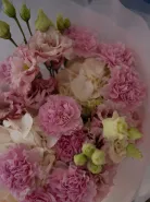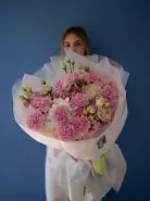 Нежный и элегантный букет выполнен в гармоничных белых и розовых оттенках, создавая атмосферу нежности. В его составе: пышная гортензия, символизирующая утонченность и деликатность, изящная эустома придает свежести, а множество диантусов добавляют объем и яркую текстуру. Такой букет отлично подойдет для поздравлений или просто, чтобы подарить радость близкому человеку. Его воздушность и богатство красок подчеркнут важность момента и вызовут улыбку у любого, кто его получит.