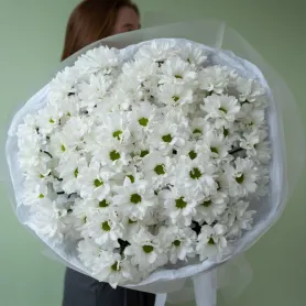 Изысканный букет из белых кустовых хризантем как символ чистоты и нежности. Каждая хризантема, словно маленькое солнышко, наполняет пространство светом и радостью. Их густые соцветия создают объем и текстуру, а белый цвет придает букету элегантность и утонченность. Такой букет станет великолепным подарком для любого случая: от торжества до простого выражения чувств. Он способен украсить интерьер и создать атмосферу уюта и тепла.