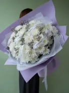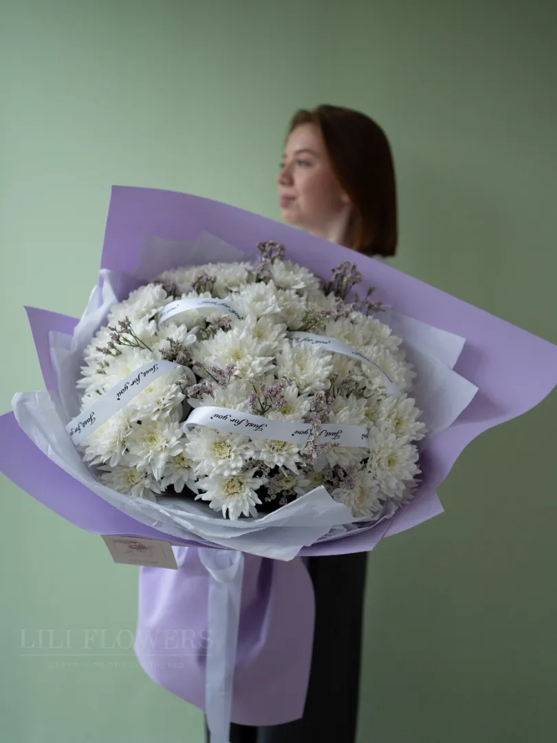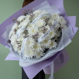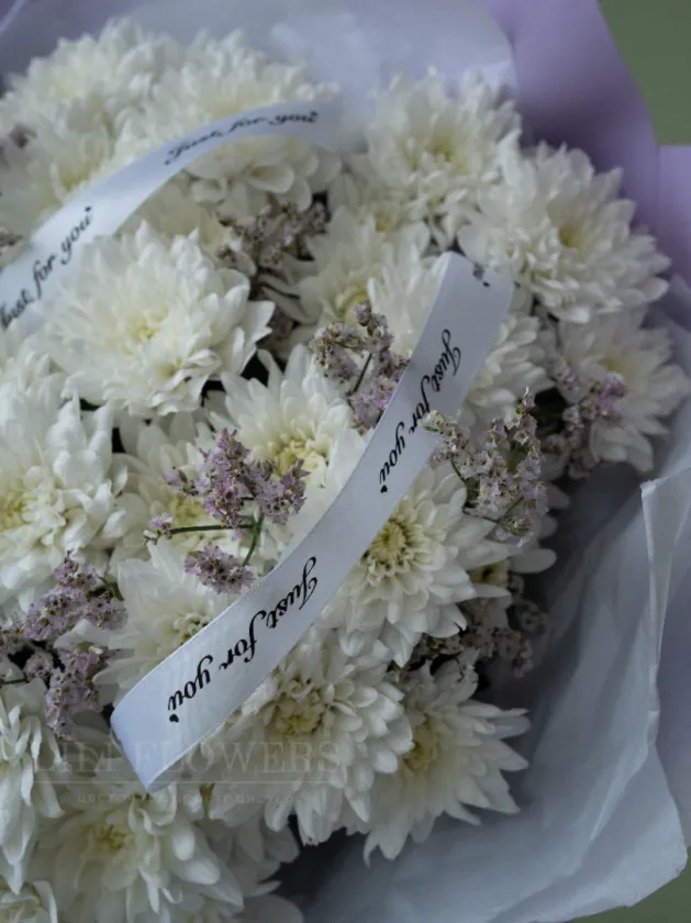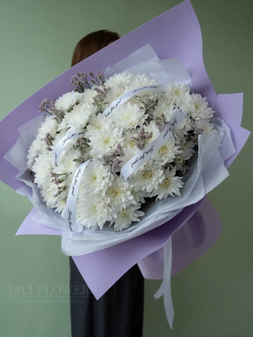Стильная композиция из хризантем и лимониума привносит в интерьер свежесть и яркость. Хризантемы с их насыщенными цветами и густыми соцветиями символизируют радость и благополучие, а лимониум создает легкость и воздушность. Вместе они образуют гармоничное сочетание, которое прекрасно украсит любой праздник или станет изысканным подарком для близких. Эта композиция дарит положительные эмоции и наполняет пространство теплом и уютом.