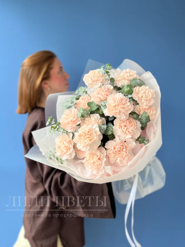 Очаровательный букет из розоватых диантусов. Их мягкие розовые оттенки создают атмосферу тепла и уюта, а тонкие лепестки добавляют изысканности. Диантусы прекрасно подходят для любого случая, будь то день рождения, юбилей или просто желание порадовать близкого человека. Этот букет станет великолепным подарком, наполняя пространство радостью и позитивом, и будет радовать глаз своим великолепием долгое время.