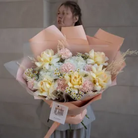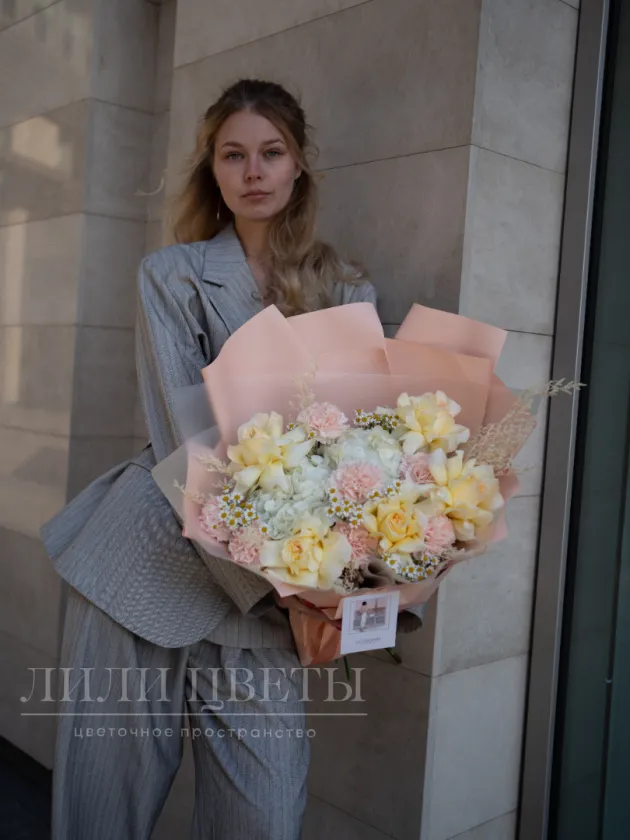Букет собранный из ярких и свежих оттенков, символизирует радость и обновление, присущее весне. Он наполнен энергией и радостью, способной поднять настроение даже в самый пасмурный день. Каждый цветок напоминает о пробуждении природы, о первых теплых днях и о том, как важно ценить каждое мгновение. Этот букет станет прекрасным подарком для друзей или близких, напоминая им о том, что впереди ожидаются только светлые и радостные моменты.
