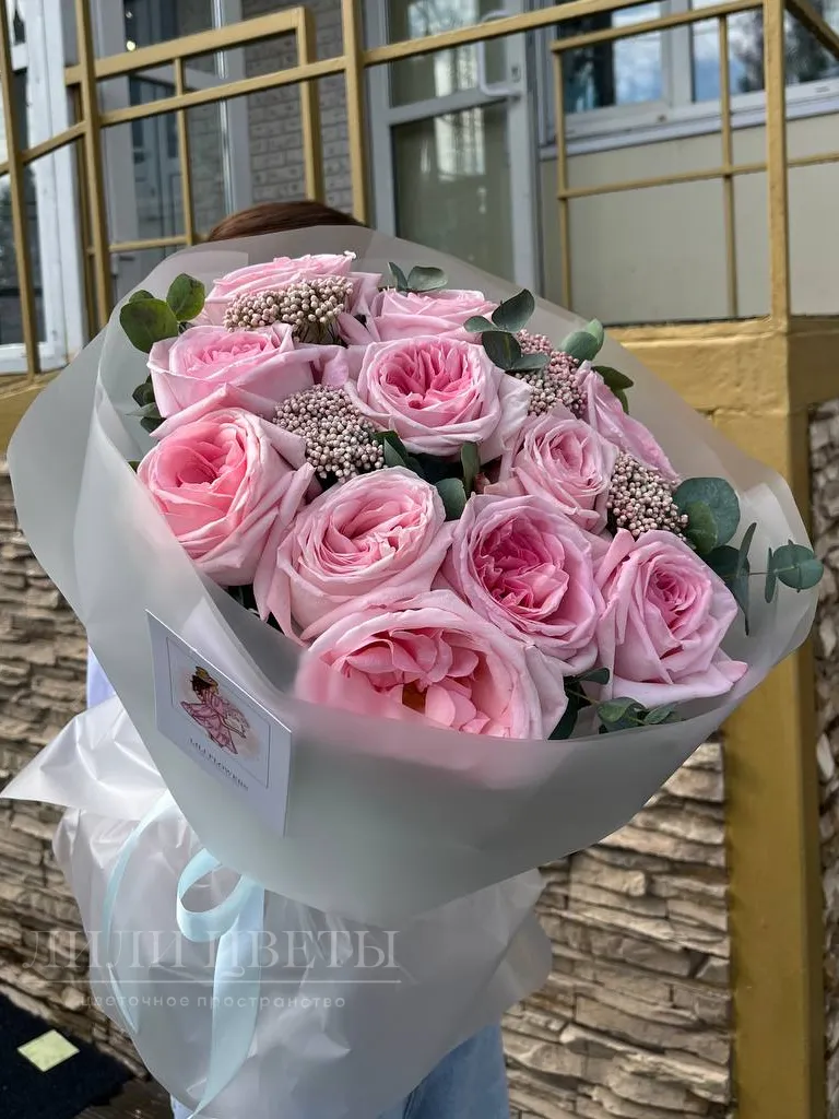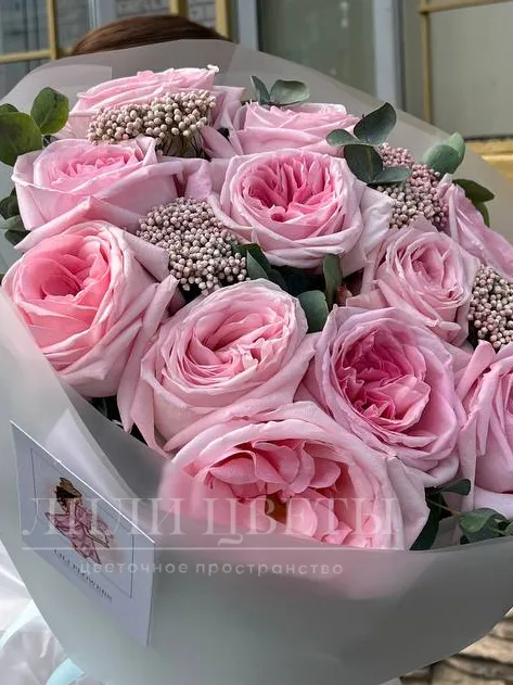 Ароматные пионовидные розы Pink Ohara в воздушном букете