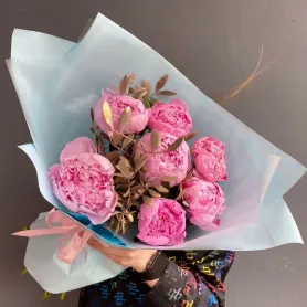 Этот монобукет из розовых пионов с писташем является прекрасным подарком для любой особенной женщины в вашей жизни.