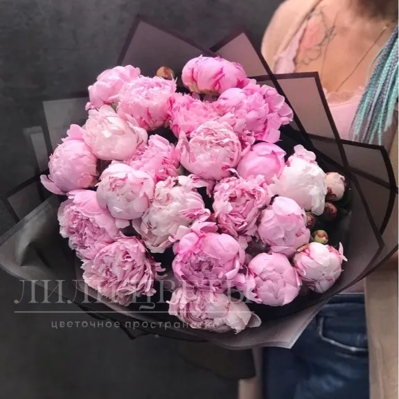 Данный монобукет из розовых пионов окутывает вас своим чувственным ароматом и нежным видом, создавая атмосферу романтики и любви.
