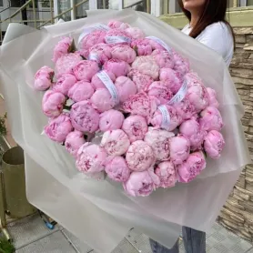 Большой монобукет из розовых пионов - это роскошный и нежный выбор для особых моментов.
