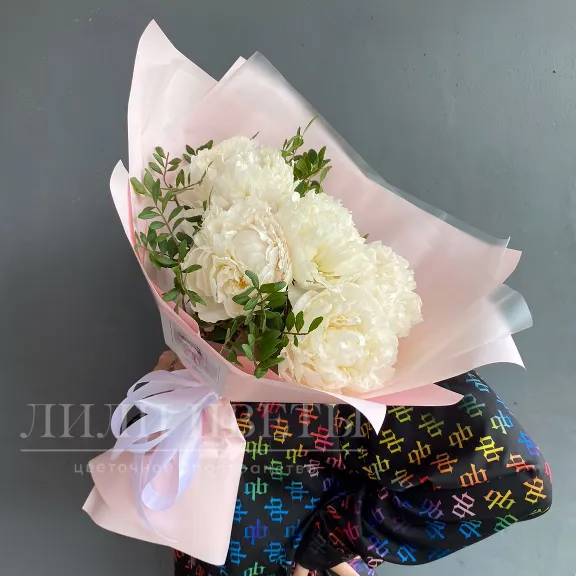 Монобукет из белых пионов - это изящное сочетание нежности и элегантности.