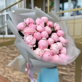 Этот восхитительный монобукет из розовых пионов наполнит вашу жизнь нежностью и элегантностью.