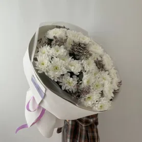Букет из кустовых хризантем с лимониумом