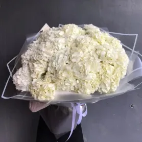 Белые гортензии - это очарование и нежность, что делает этот монобукет идеальным для свадеб, юбилеев, романтических свиданий и просто для того, чтобы порадовать близких людей.