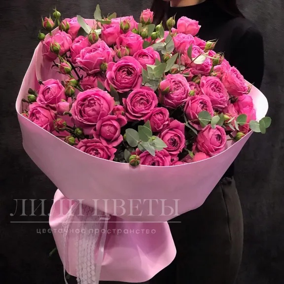 Монобукет из кустовых роз с эвкалиптом «Чувственность»