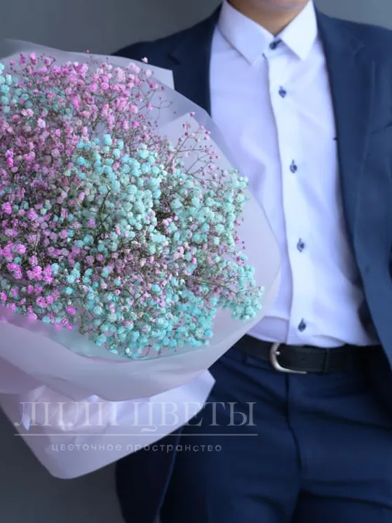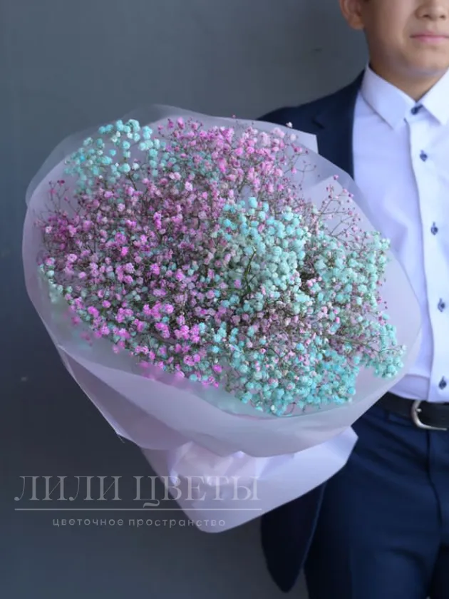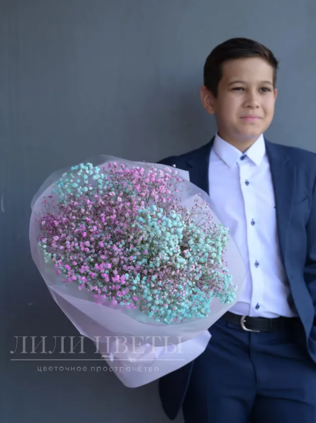 Яркий букет из разноцветной гипсофилы — настоящее воплощение радости и надежды, идеальный подарок к 1 сентября.