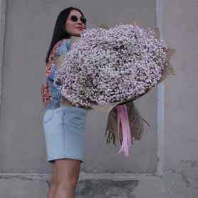 Монобукет из нежных розовых гипсофил в крафтовой обертке – это элегантное и воздушное сочетание, которое приносит нежность и романтику в любое событие.