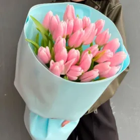 Монобукет из розовых тюльпанов воплощает в себе нежность и романтику.