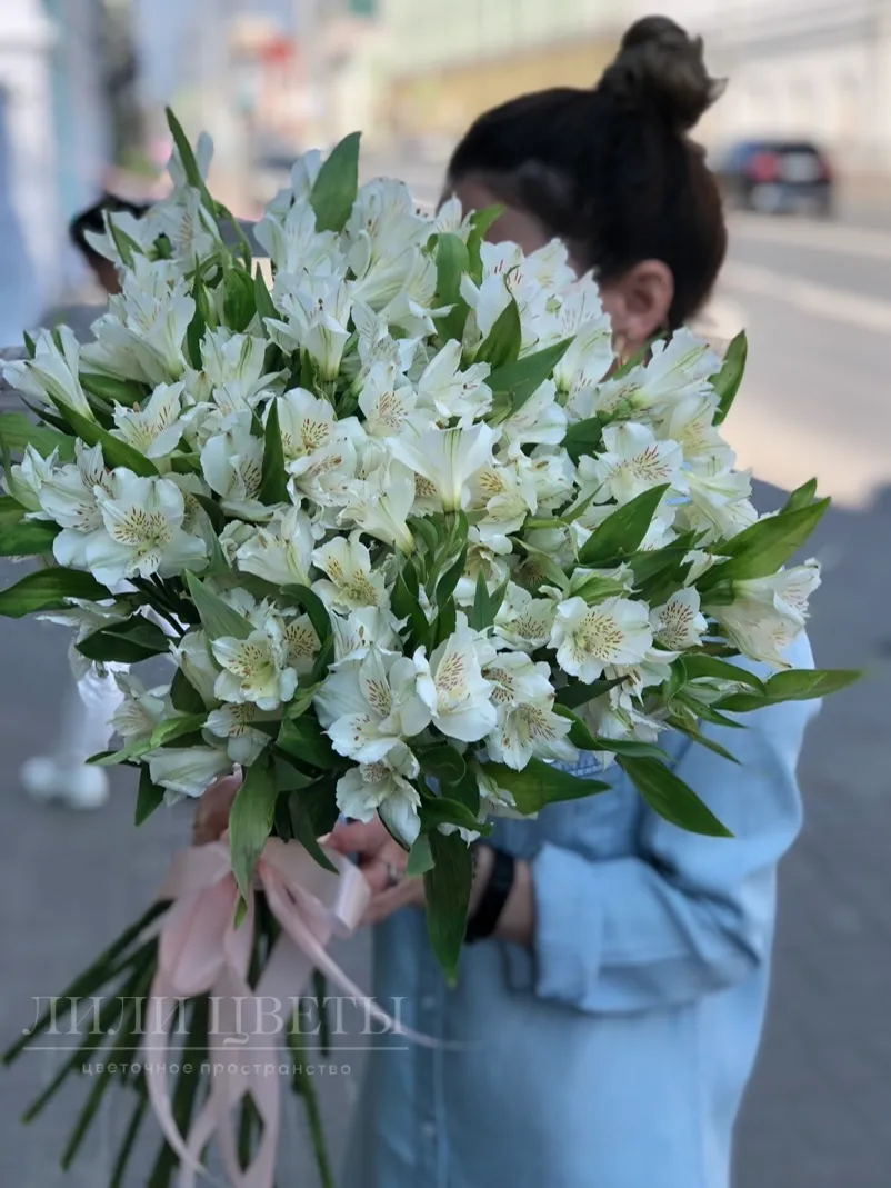 Букет из белых альстромерий олицетворяет нежность и чистоту.