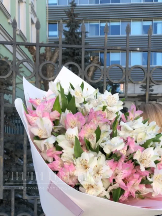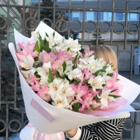 Букет из бело-розовых альстромерий