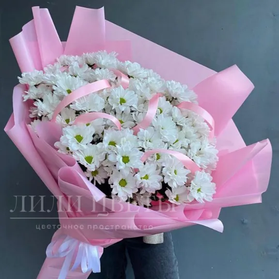 Монобукет из хризантем «Белоснежная затея»