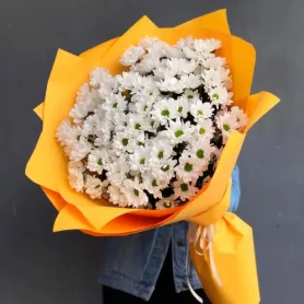 Элегантный и изысканный монобукет из белых кустовых хризантем представляет собой прекрасное сочетание свежести и нежности.