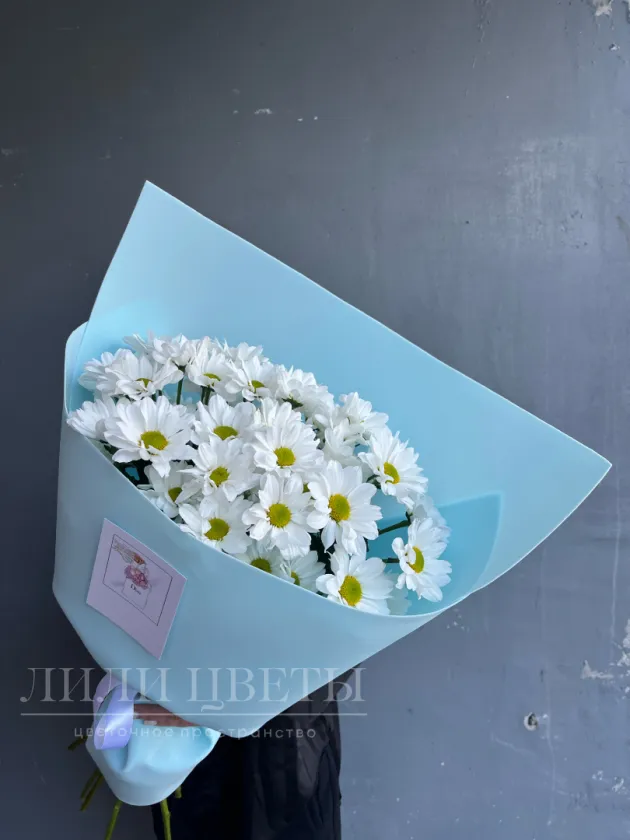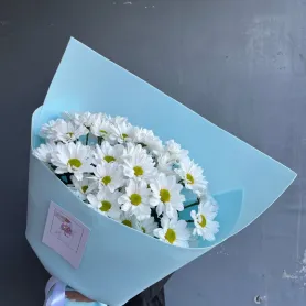 Этот букет из белых кустовых хризантем - идеальный подарок к 1 сентября.