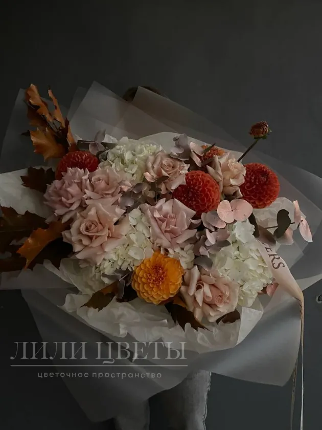 Осенний букет с георгинами