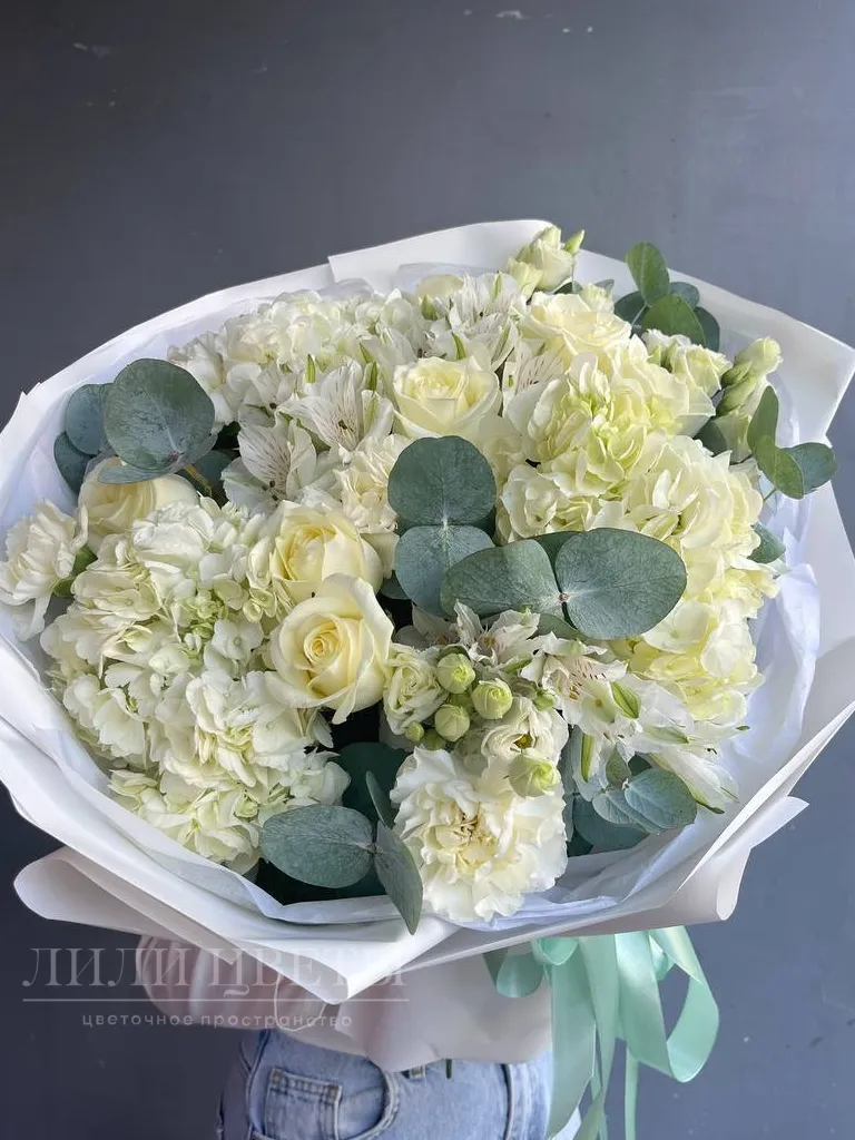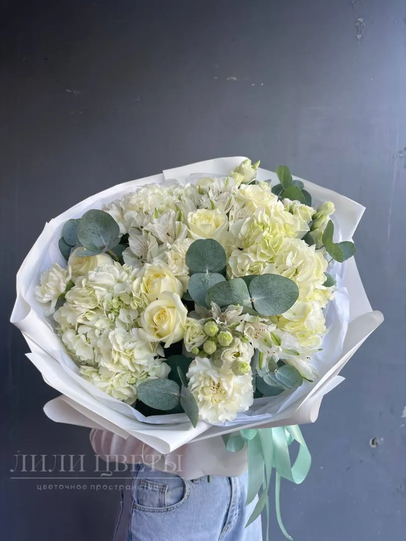Сборный букет в белых тонах с гортензией