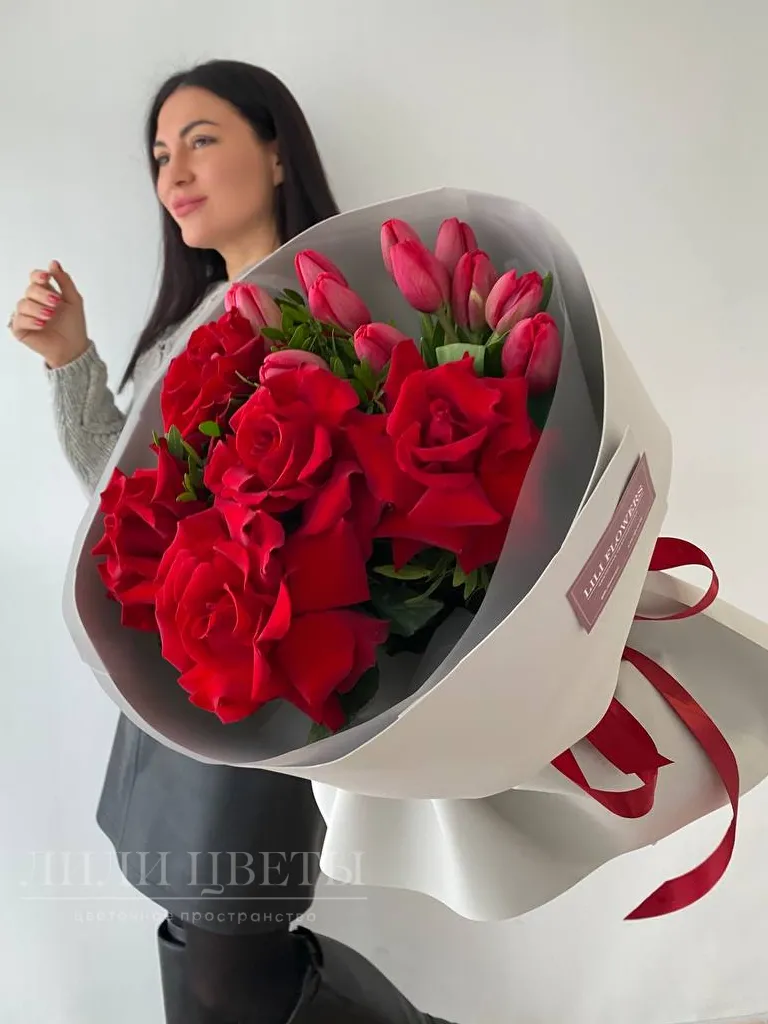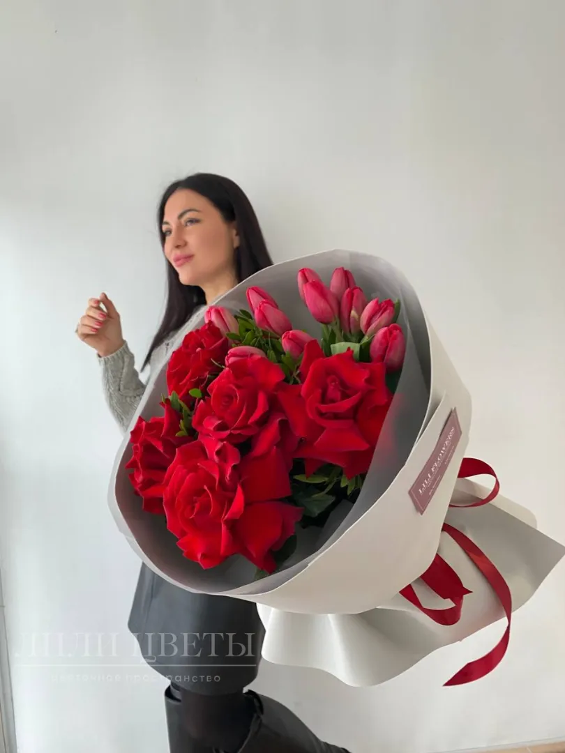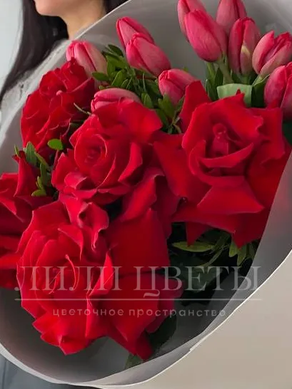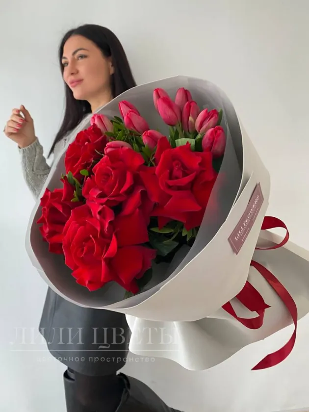 Заказать Букет из ажурных роз с тюльпанами за 5300 руб. в городе Казани - «Lili Flowers»