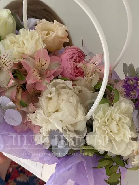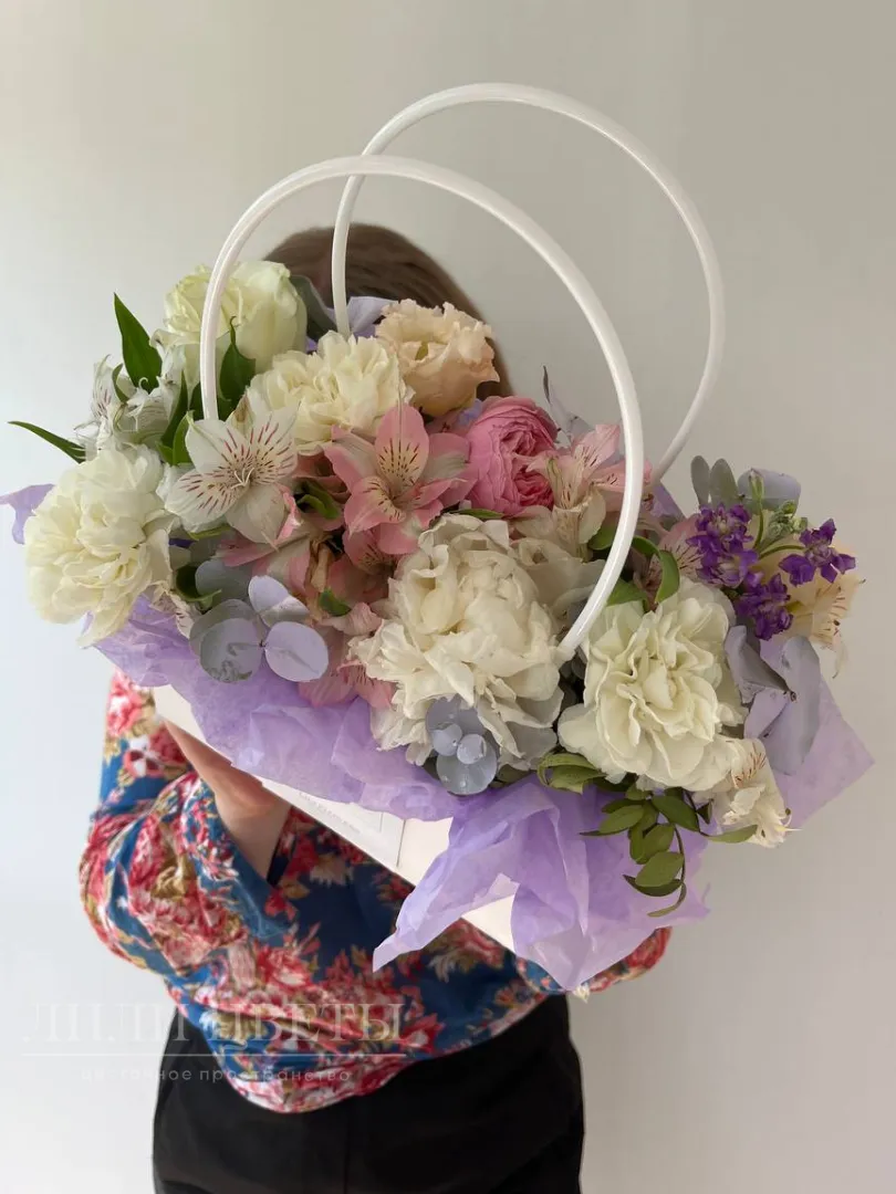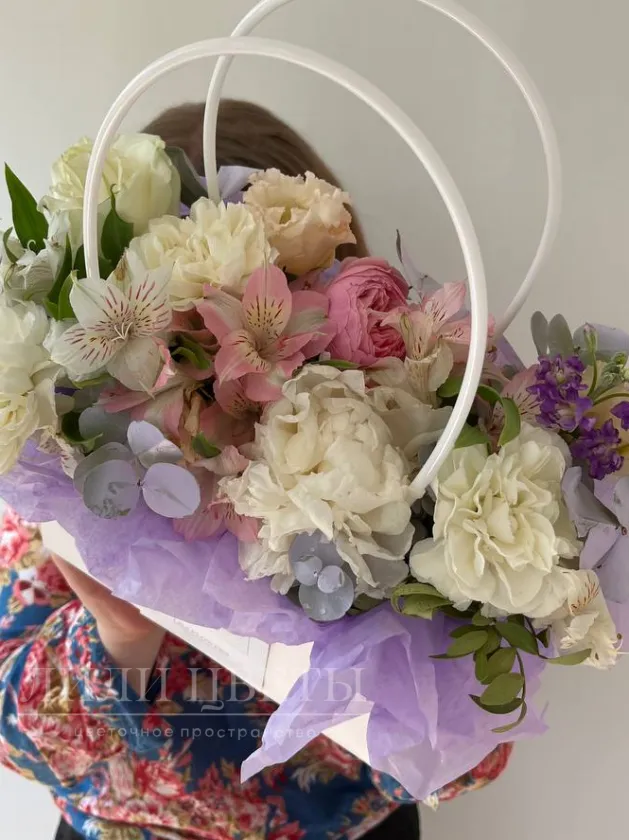 Сборная сумочка альстромерией, гвоздиками и розами