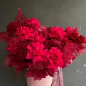 Композиция с красными и малиновыми ажурными розами