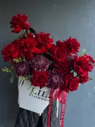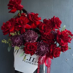 Цветочная композиция «Волшебный сад» как истинное воплощение сказочной красоты и нежности. В ее основе ажурные красные розы, символы любви и красоты, со своей изящностью, они чутко переплетаются с элегантными крупными хризантемами, добавляющие композиции утонченность и глубину. Каждая деталь гармонично сочетается, создавая ощущение таинственного и волшебного уголка природы, наполненного светом и магией.