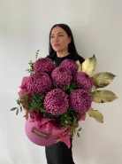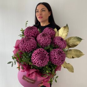 Крупные хризантемы в коробке идеально подойдут для украшения интерьера, создания праздничного настроения или в качестве подарка для близких.