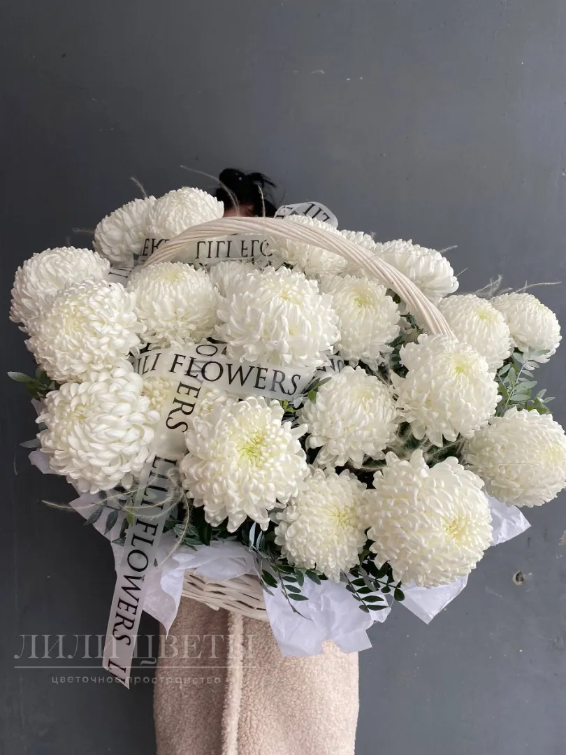 Белые хризантемы - воплощение элегантности и утонченности, которые способны преобразить любое пространство и создать атмосферу гармонии. Изысканная корзина, наполненная пышными хризантемами, станет великолепным акцентом в интерьере и прекрасным подарком для особого случая. Символ чистоты и искренности, нежные лепестки излучают свет и тепло, наполняя окружающее пространство свежестью и радостью.