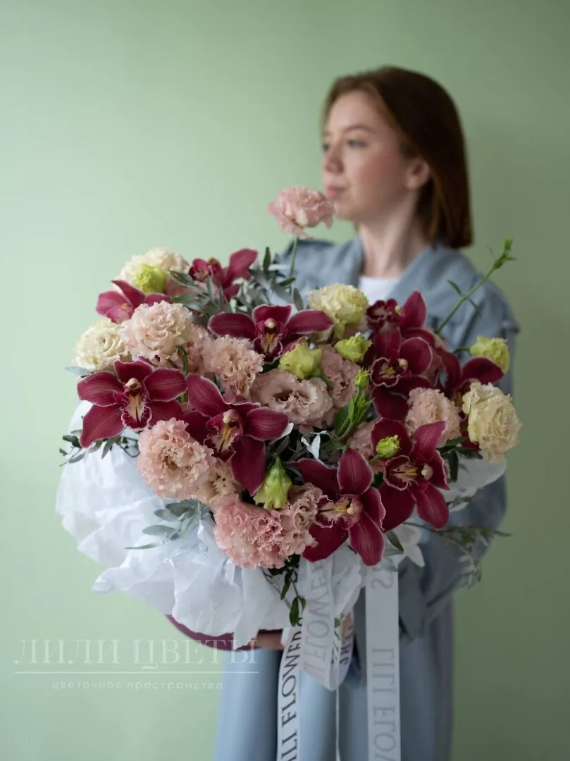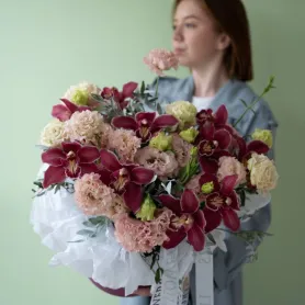 Цветочная композиция из орхидеи и эустомы в стильной коробке - это идеальное решение для создания атмосферного уюта и элегантности в вашем интерьере. Яркие, экзотические орхидеи сочетаются с нежными цветами эустомы, создавая гармоничный контраст. Коробка в современном дизайне подчеркивает красоту цветов и станет прекрасным подарком для близких. Эта композиция наполнит пространство свежестью и радостью, привнося нотки природы в повседневную жизнь.