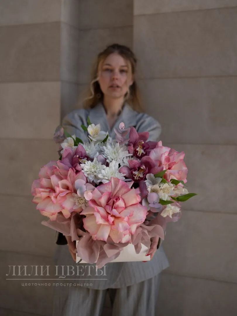 Загадочная композиция с контрастными орхидеями и необычными розами словно переносит вас в волшебный ночной сад. Его таинственность и очарование не оставят равнодушным никого, кто его увидит. Каждый цветок словно хранит свою тайну, а их сочетание создает уникальную композицию, полную загадок и интриг. Идеален для особых случаев или как знак внимания, этот презент станет настоящим произведением искусства, которое украсит любой интерьер и создаст атмосферу волшебства.