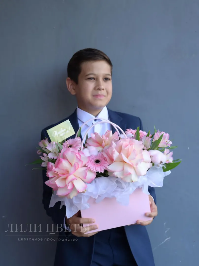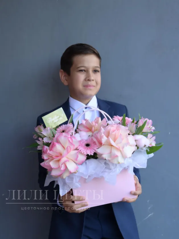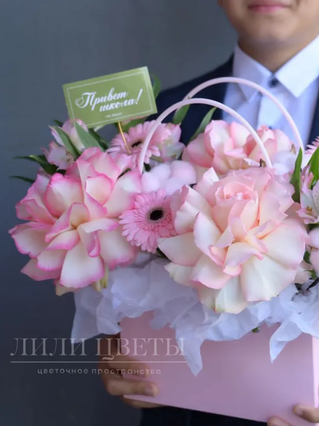 Композиция в сумочке нежно-розовая