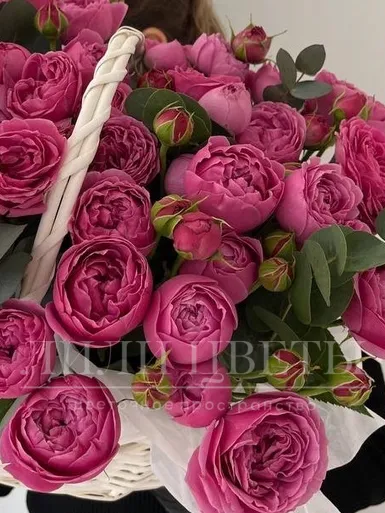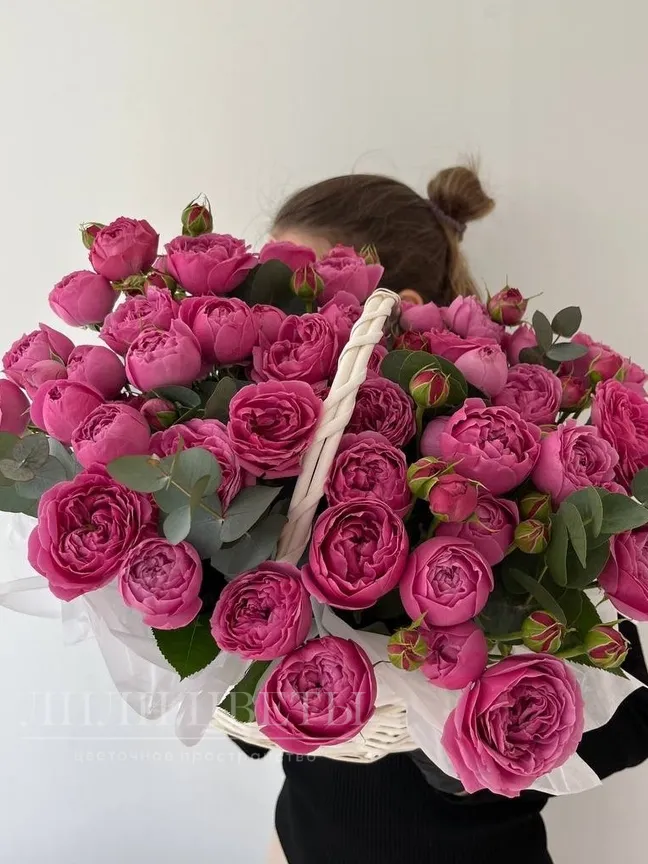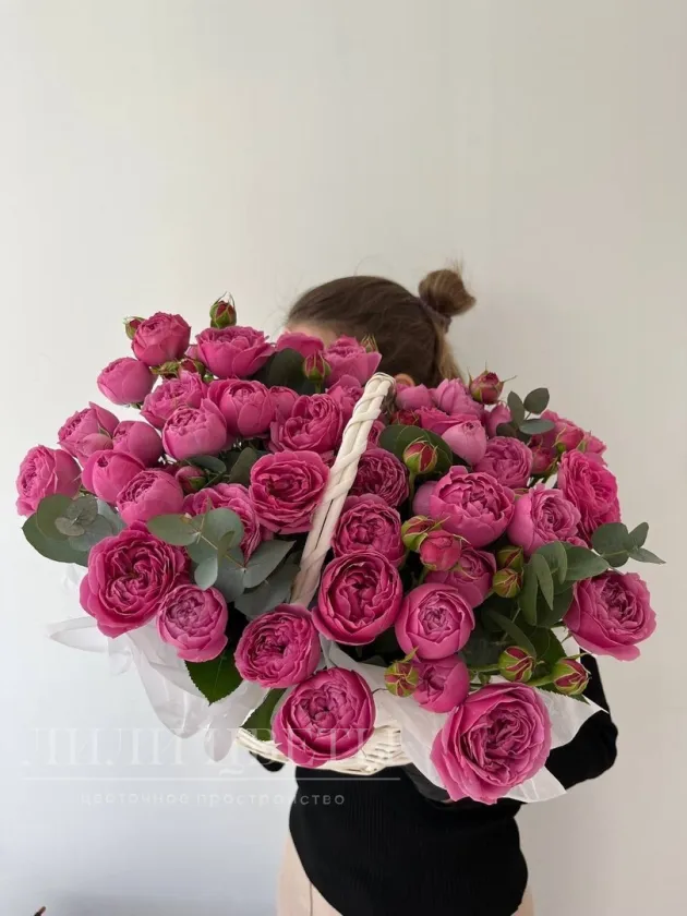 Кустовые розы в корзине