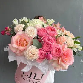 Композиция в шляпной коробке с Сильва Пинк