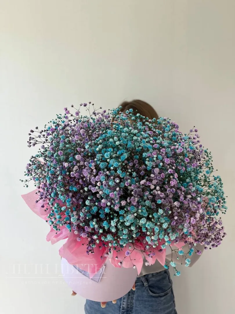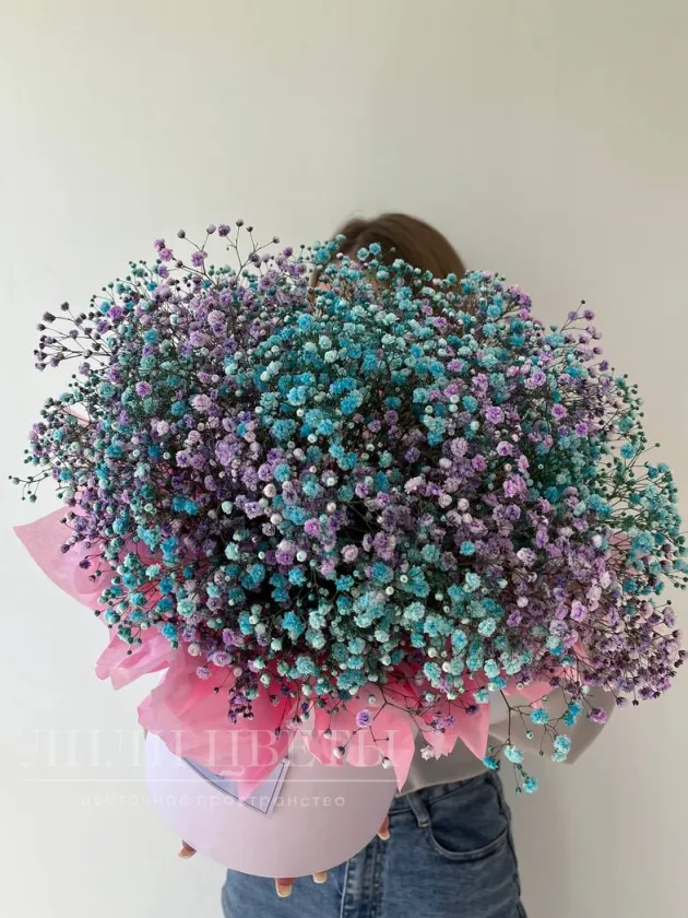Композиция в шляпной коробке с гипсофилой