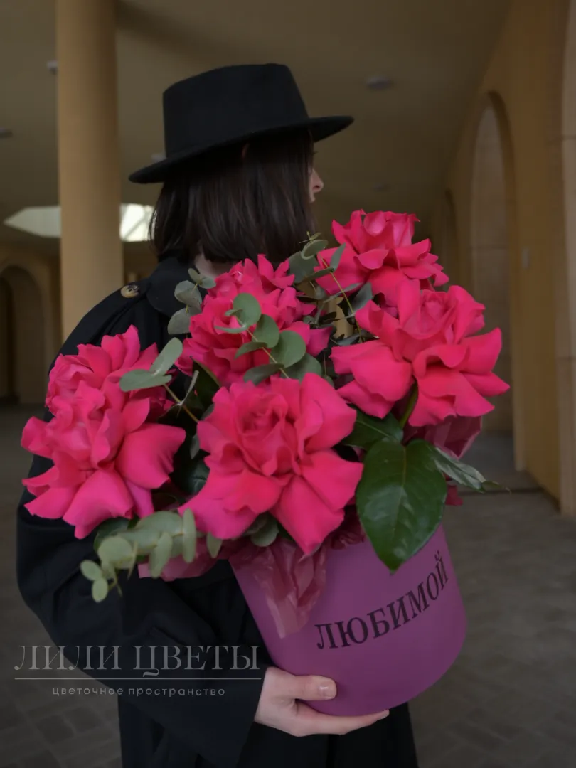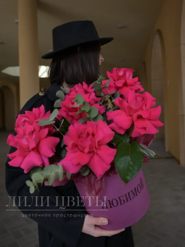 Шляпная коробка изысканно украшена розовыми розами, воплощая эстетику романтики и красоты.