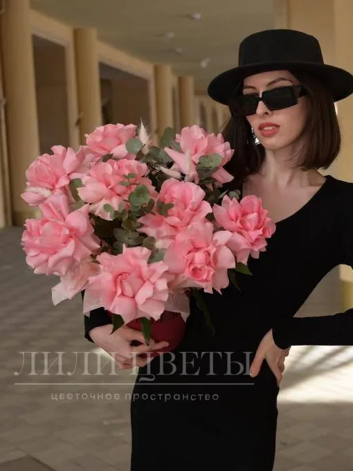 Композиция в шляпной коробке из нежных ажурных роз