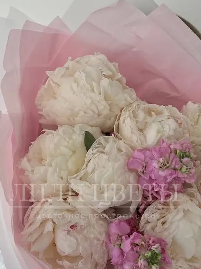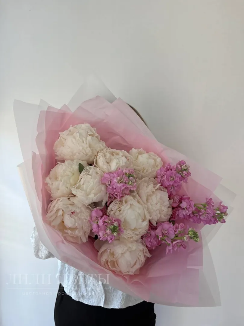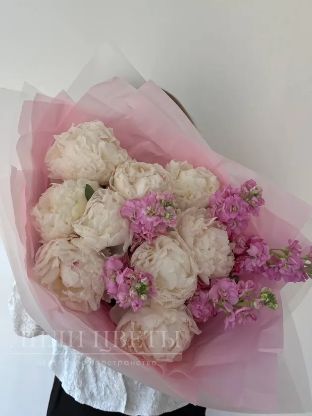 Букет с белыми пионами и маттиолой