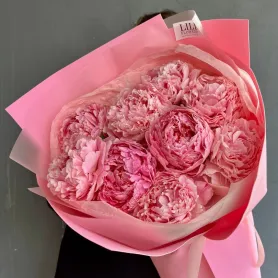 Розовый букет из 9 пионов