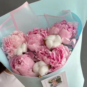 Букет из пионов и хлопка