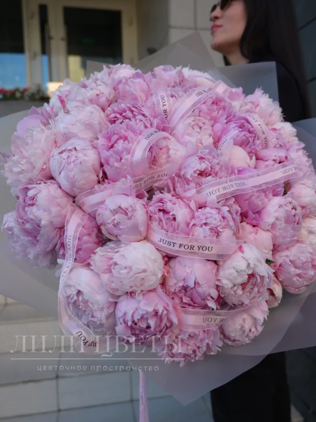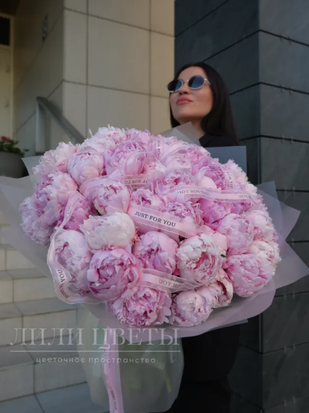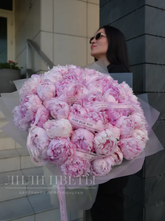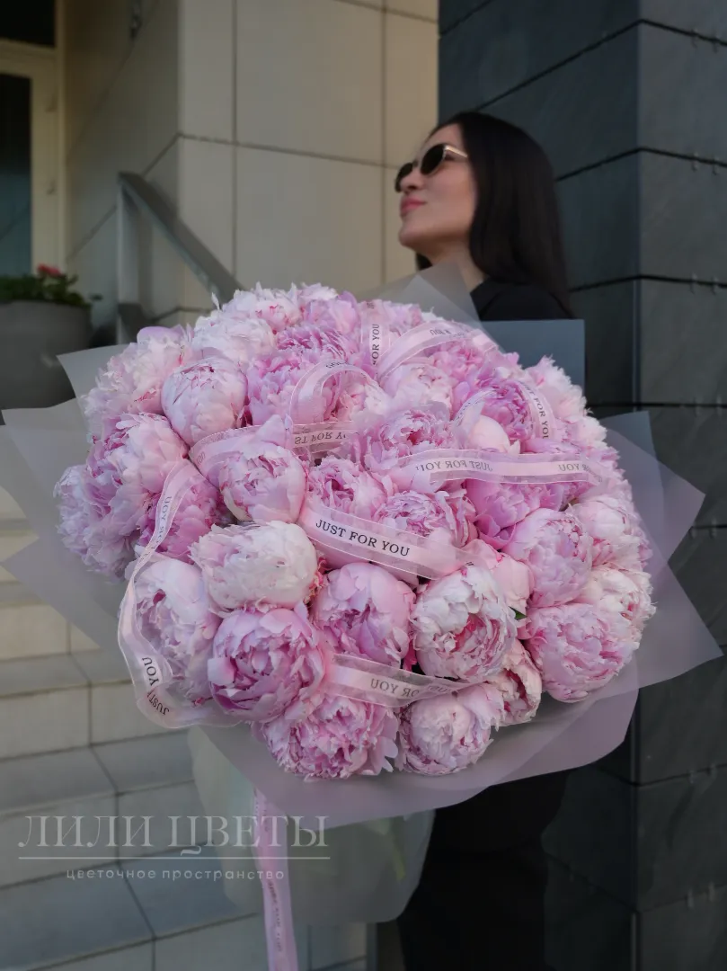 Этот изысканный букет из 51 роскошного пиона представляет собой совершенство природы, становясь идеальным подарком, способным выразить ваши самые теплые чувства и восхищение.