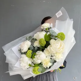 Сборный букет из пионов с вибрунумом