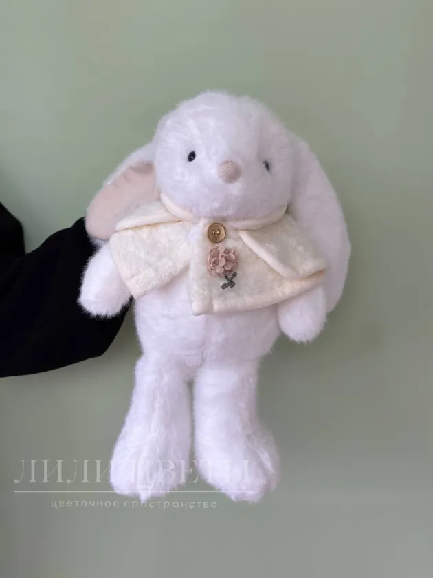 Милый зайчик с накидкой отлично подойдет в качестве подарка в холодные времена.